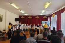 29 нчы апрель конне гиназиябезгэ Муса Жэлил премиясе лауреатлары - "Жырлыйк эле" тапшыруы скрипкачысы -Динэ Закирова, Г. Камал театры артисты - Илнур Закиров килде. Алар 5нче сыйныф укучыларын " Кызыл ромашка" штабына кабул ителуен карадылар, узлэре дэ матур чыгышларын алып килгэннэр иде. Очрашудан канэгать калып, тагын килергэ суз бирделэр.