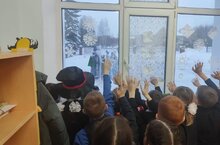 Бүген Карадуван гимназиясе укучыларын котларга Кыш бабай һәм Кар кызы килде. -