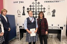 Гимназия директоры Зарипова Гөлсинә Фаил кызы армрестлинг буенча республика ярышларында 1 урын өчен Сагитзянова Дильбар бүләген тапшырды. -