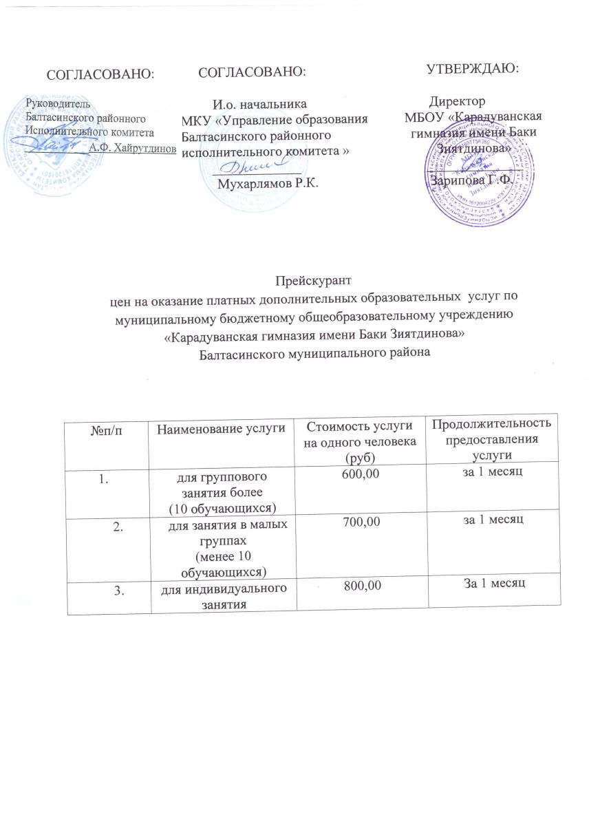 Постановление Балтасинского исполнительного комитета РТоб утверждении перечня платных услуг