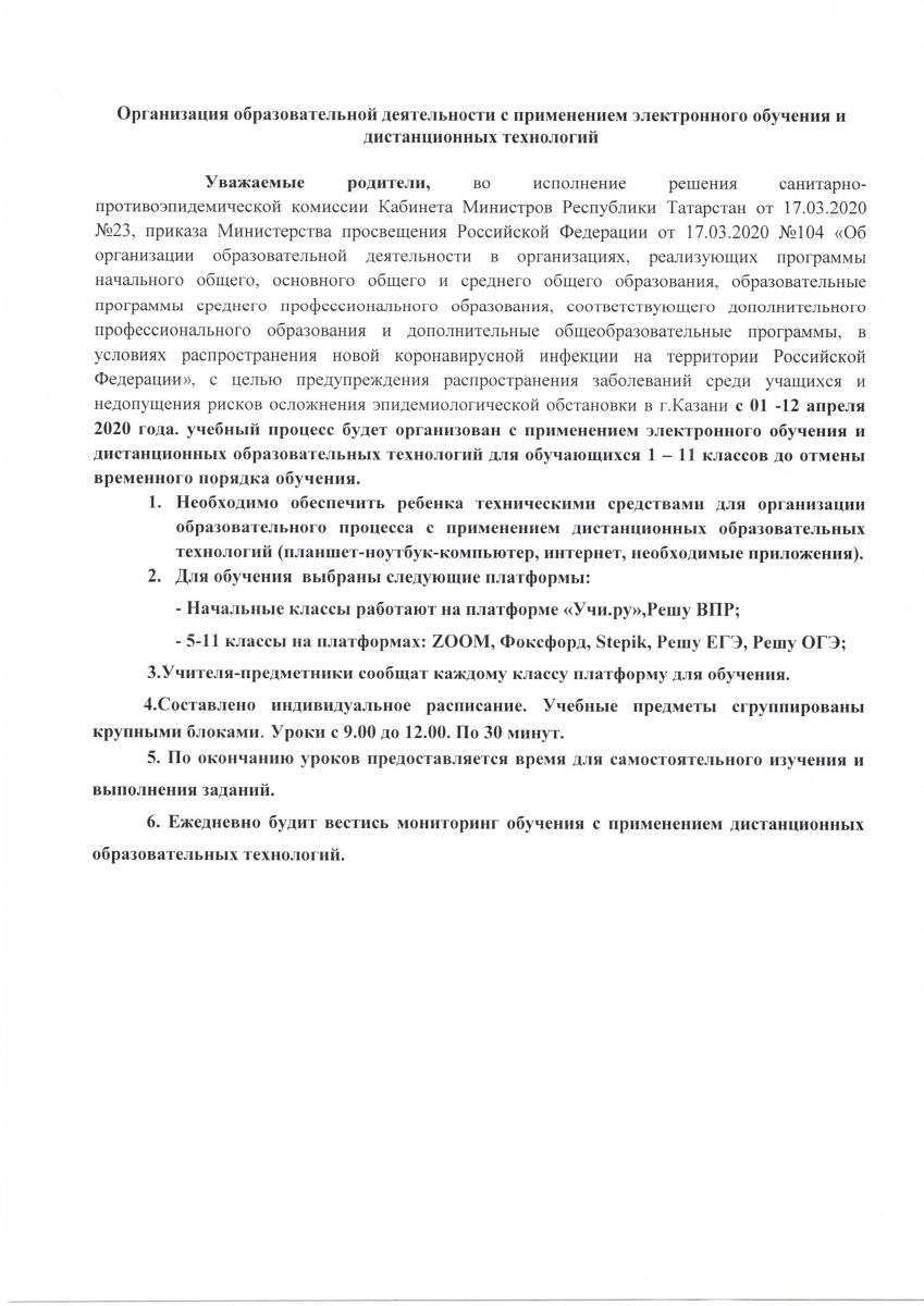 Расписание для дистанционного обучения с 20 апреля 2020 года.docx