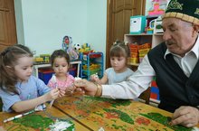 Безнең балалар бакчасы балалары яңадан Норма авылының балта остасы Госман Гомәр улы белән очраштылар. Ул аларга усак агачыннан тасма-тәкыя ясау буенча мастер-класс үткәрде.