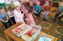 По плану профориентации дети младшей группы познакомились с профессией медсестры. С ними были проведены беседы на эту тему и проводились сюжетно-ролевые игры. Дети ходили на экскурсию в кабинет медсестры.