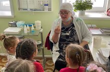 Һөнәри юнәлеш планы нигезендә кечкенәләр төркеме балалары шәфкать туташы һөнәре белән таныштылар. Бу тема буенча әңгәмәләр, сюжетлы уеннар уздырылды. Балалар шәфкать туташы бүлмәсенә экскурсиягә бардылар. Балаларда аның хезмәтенә карата ихтирам тәрбияләнде.