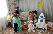Кечкенәләр төркеме №1 балалары белән 12 апрель Космонавтика көне уңаеннан әңгәмә үткәрелде. Алар беренче космонавт Юрий Гагарин белән таныштылар; космос галәм, җир шары турында белемнәрен ныгыттылар.