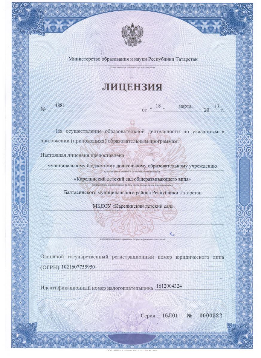 | Адрес: | 422253, Республика Татарстан, Балтасинский район, село Карелино,улица Загидуллина д.6 |