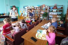 Китапханәче Нурсия Габдулловна бакча балаларын яңа "Салават күпере" журналлары белән таныштырды.