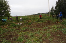 Мәктәп каршындагы яшелчә бакчасында быел уңыш бик мулдан булды. Бүген коллектив белән җыелып бәрәңгене сөенеп алдык. Һәркем өмәдән зур канәгатьлек белән таралды.