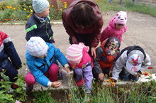 Мәктәпкәчә балалар белән орлык җыярга өйрәнү.