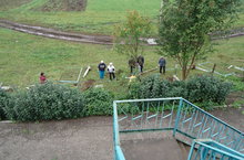 Бездә ремонт эшләре дәвам итә. Бүген әтиләр, бабайлар ярдәме белән койма баганалары утырта башладык. Эшебездә катнашкан һәркемгә олы рәхмәтебезне белдерәбез.