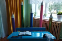 В школе-детском саду продолжается работа по оформлению групп и игровых участков.