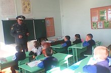 ГАИ начальнигы бүген бездә кунакта булды. Ул 1 нче сыйныф укучылары белән танышты һәм юл йөрү кагыйдәләре буенча әңгәмә корды.