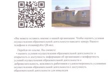 «Вы можете оставить мнение о нашей организации. Чтобы оценить условия осуществления образовательной деятельности наведите камеру Вашего телефона и отсканируйте QR-код. 29.09.2023