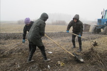Мәктәп-бакча коллективы хезмәткәрләре һава торышы начар булуга карамастан территорияне җыештырдык.