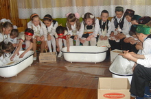 Мәктәп укучылары Карадуган мәдәният йортында үткәреләчәк фольклор кичәсенә әзерләнеп яталар.