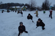 Тышта буран, ә без үзебезнең территориябездә рәхәтләнеп кардан сыннар әвәлибез.