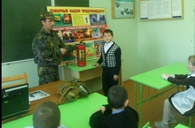 Пожар куркынычсызлыгы турында ОБЖ укытучысы Михайлов Э.Э. укучылар алдында чыгыш ясый.