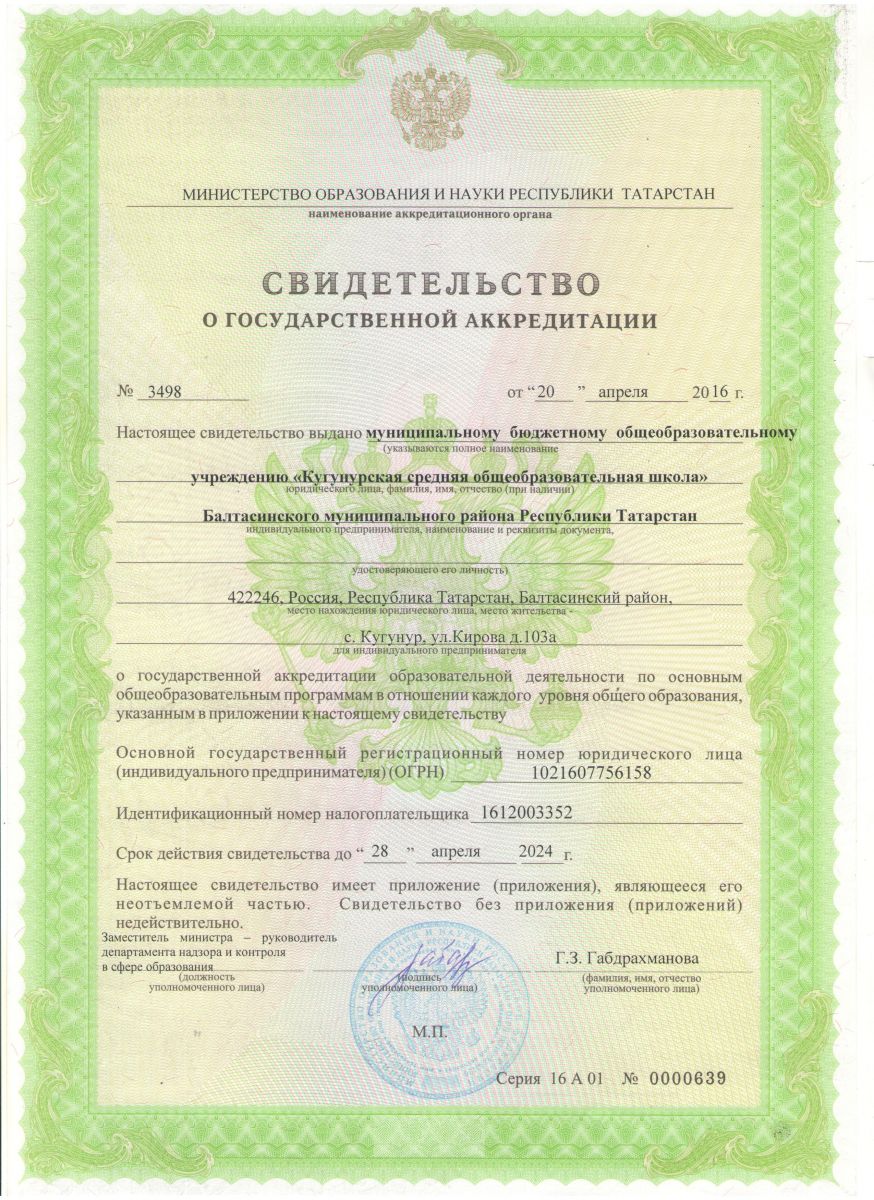 Муниципальное бюджетное общеобразовательное учреждение «Кугунурская средняя общеобразовательная школа» Балтасинского муниципального района РТ\"Татарстан Республикасы Балтач муниципаль районы "Куныр урта гомуми белем мәктәбе" муниципаль бюджет гомуми белем учреждениесе