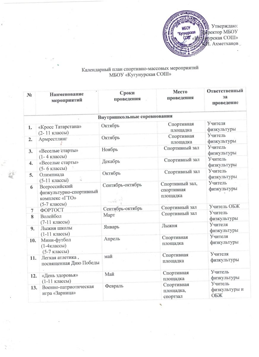 План спортивно-массовых, физкультурно-спортивных и социально-значимых мероприятий на 2020-2021 учебный год