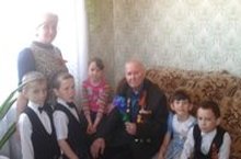 Гость мероприятия Байтуганов Петр Васильевич поведал детям о трудной жизни в годы Великой Отечественной войны и пожелал им не болеть, любить Родину, родителей, в будущем хорошо учиться.