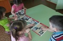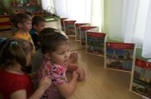 Воспитатель старшей группы Лебедева Е.И. провела беседу на тему "Города-герои". Воспитанники с интересом рассматривали папку-передвижку с фотографиями.