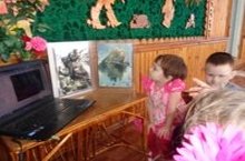 Воспитатель Лебедева Е.И. познакомила воспитанников с юными защитниками Родины, которые плечом к плечу со взрослыми сражались с захватчиками в годы Великой Отечественной войны.