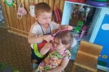 В младшей группе "заработала" парикмахерская и Глеб сделает Вам самую модную прическу.
