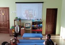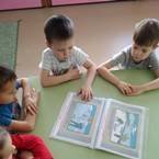 В гостях у подготовительной к школе группы библиотекарь Светлана Вениаминовна. Она рассказала воспитанникам о писателе Джанни Родари и познакомила с его произведением "Приключения Чипполино"/Мәктәпкә әзерлек төркемендә кунакта китапханәче Светлана Вениаминовна. Ул балаларга язучы Джанни Родари турында сөйләде һәм аның "Чипполин маҗаралары" әсәре белән таныштырды"