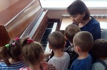 Воспитанники младше/средней группы с нетерпением ждут занятий по музыке с Рамзией Салимовной. Сегодня она познакомила с пианио.