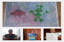 Воспитанники подготовительной группы познакомились с названиями планет, из чего они состоят и рисовали на тему "Жители других планет"