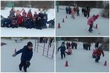 Для детей были организованы игры этафеты: забей гол, скачки, юный стрелок, покатай на санках.