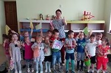 Ольга Николаевна провела с детьми беседу о полезных продуктах, организовала игры эстафеты.