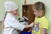 Работа по профориентации активно ведется в детском саду.Именно здесь они впервые знакомятся с профессиями врача, продавца, водителя /Хастаханә уен зонасында кызлар бик теләп уйныйлар