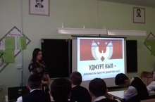 Впервые в рамках всемирного празднования Дня удмуртского языка и поддержки инициативы Всеудмуртской ассоциации «Удмурт Кенеш» в нашей школе тоже прошли мероприятия, посвященные этому знаменательному дню. К учащимся старших классов были приглашены журналисты районной газеты на удмуртском языке "Азьлане" ("Вперёд") Плотникова О.Ю и Жукова Н.Л. Они ознакомили детей с историей газеты, рассказали интересные факты из её жизни, их выступления были пронизаны любовью и уважением к языку и удмуртской нации. А также учителями удмуртского языка была проведена интересная викторина, посвященная жизни и творчеству удмуртского народа.