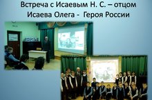 7 декабря2017 года в школе прошла встреча с Исаевым Николаем Степановичем – отцом Исаева Олега Николаевича – Героя России. Героями не рождаются, героями становятся в час испытаний. В каждую эпоху есть свои герои – люди, которые отважно защищали свое Отечество, внесли огромный вклад в историю своей страны. Люди, которые совершили подвиг, многие из них пожертвовали своей жизнью во благо Родины. Одним из таких людей и был Олег Исаев. Николай Степанович рассказал детям о подвиге сына, о том, каким он был в детстве. День Героев Отечества – важная для нас памятная дата, которая является продолжением исторических традиций и способом сохранения памяти о том, какие подвиги были совершены героями нашей страны. Мы не только отдаем дань памяти героическим предкам, но и чествуем ныне живущих героев.