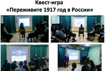 В рамках проведения недели истории и обществознания, а также мероприятий посвященных празднованию 100-летия Великой Российской революции 1917 года учитель истории Медведева Н.Н. провела с учащимися 9,10,11 классов квест–игру «Переживите 1917 год в России». Увлекательный исторический квест, в котором учащиеся почувствовали себя участником событий в России 1917 года. Участники квета выбирали решение в зависимости от революционной ситуации: от выбора этогорешения зависелаих судьба в этой революции.