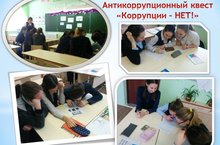В рамках правового просвещения, антикоррупционного марафона -2017, приуроченного к Международному дню борьбы с коррупцией, проведения недели истории и обществознания в 10 классе учителем обществознания проведен антикоррупционный квест на тему «Коррупции – НЕТ!». В игре приняли участие 3 команды, которым были предложены задания. По итогам конкурса победителем стала команда «Чистые сердца». Мероприятие способствовало формированию антикоррупционного мировоззрения.
