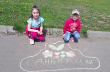 Сейчас День России — праздник свободы, гражданского мира и доброго согласия всех людей на основе закона и справедливости. Этот праздник — символ национального единения и общей ответственности за настоящее и будущее нашей Родины.10 июня 2017 года в лагере «Дружба» провели конкурс рисунков на асфальте, посвященый Дню России. Дети рисовали на асфальте Российский флаг.