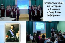 Учитель истории Медведева Н.Н. провела в 7 классе открытый повторительно- обобщающий урок по теме «Петр Iи его реформы». Урок прошел в виде игры в «Морской бой». Военный флот 7 класса состоял из 3 кораблей «Победа», «Камень», «Юнга». Командам предлагались вопросы по систематизации знаний учащихся по изученной теме. Победителем игры стал экипаж корабля «Камень». В ходе игры учащиеся осмыслили и оценили реформы императора.