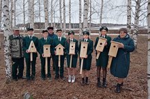 Воспитанники школьного лесничества совместно с инспекторами заказника "Балтасинский" развесили домики для птиц на территории берёзовой посадки.