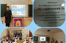 В рамках недели истории и обществознания среди учащимся 5-11 классов прошёл "Исторический бой". Учащиеся показали свои знания по всеобщей истории и истории России.