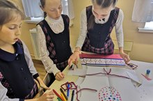 Сегодня на занятиях учащиеся познакомились с декоративно - прикладным творчеством удмуртов, изучили традиционный удмуртский орнамент, узнали о современных мастерах и дизайнерах. Также ребята на час сами стали юными дизайнерами этно - моды.