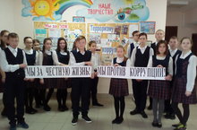 8 декабря на уроке литературы в 8 классе по теме «Коррупция и сопутствующие ей пороки чиновничества в комедии Н.В.Гоголя «Ревизор» развенчали пороки чиновничества в комедии и венец пороков – коррупцию. Восьмиклассники связали их с современностью, доказали злободневность пьесы Н. В. Гоголя. Ученики показали умение философского обобщения, открыли смысл гоголевского произведения. Провели акцию «Мы против коррупции!», «Мы за честную жизнь!»
