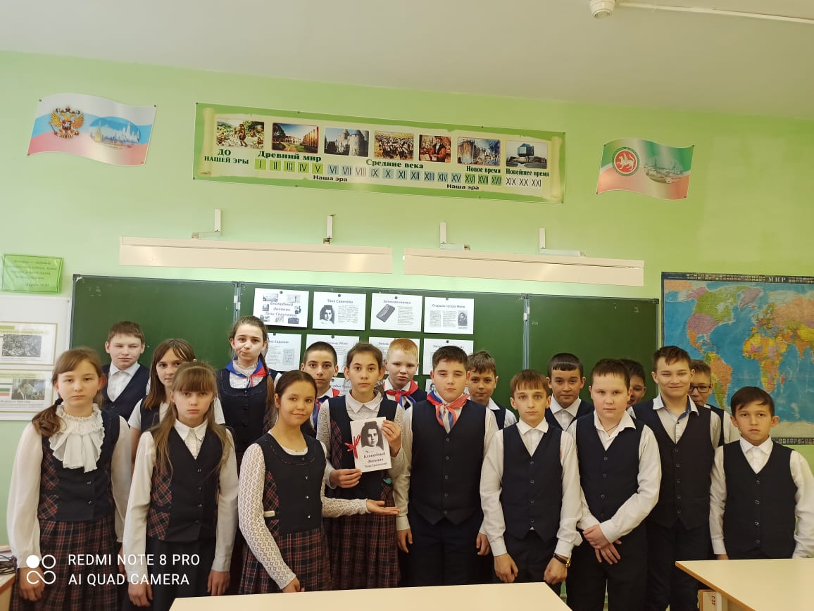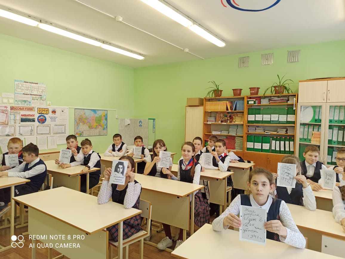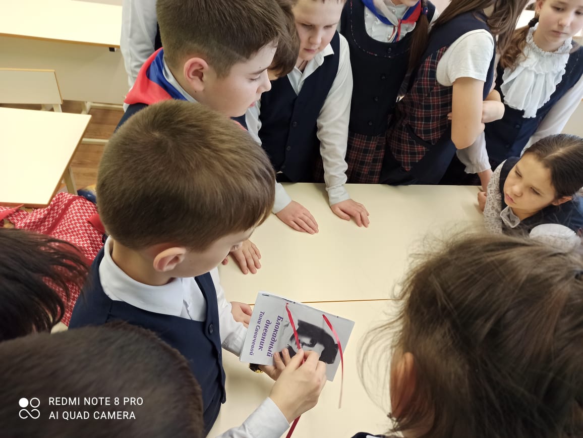 Опубликовано: 27.01.202127 января отмечают День воинской славы России — день полного снятия блокады Ленинграда. Ученики 6 класса на классном часе познакомились с непростой судьбой ленинградской школьницы Тани Савичевой. Дети затаив дыхание, слушали рассказ о своей ровеснице, в жизнь которой ворвалась война. Ребята вглядывались в портрет красивой черноглазой девочки и прочитали девять листочков дневника со скорбными записями, начертанными карандашом нетвёрдой детской рукой. Таня Савичева – 11 летняя девочка стала символом тех страданий, которые перенесли все жители блокадного Ленинграда. Её история - история тысяч детей блокадного города, трагедия её семьи – трагедия тысяч семей. Ребята оформили мини книжку- дневник Тани Савичевой. Хочется думать, что ребята не остались равнодушными.