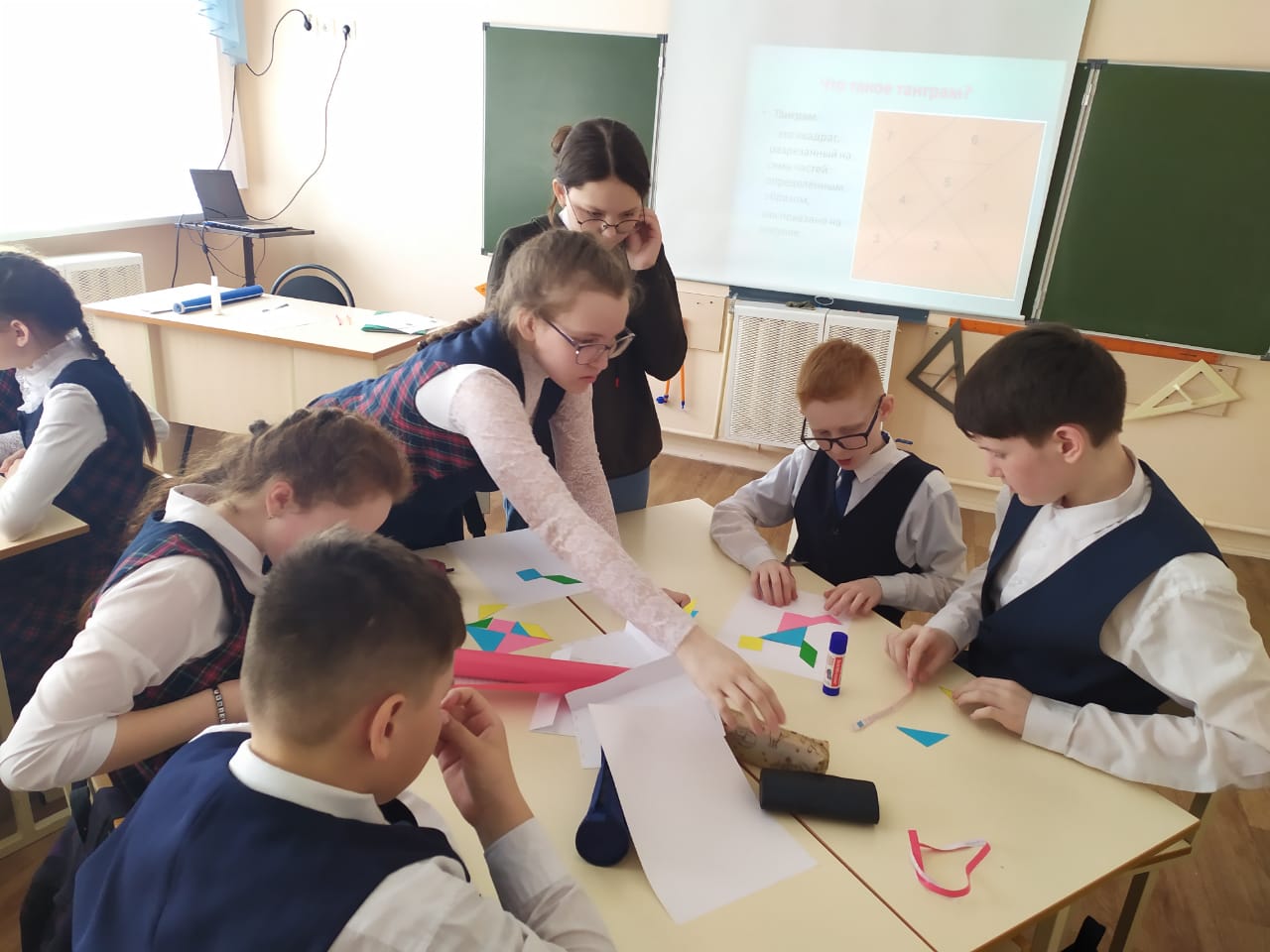 Опубликовано: 12.04.2021Проведение предметных недель в школе стало традицией. Вот и сегодня стартовала неделя МИФ ( математики, информатики и физики). Первый день посвятили истории возникновения математики. В течении дня дети знакомились с высказываниями выдающихся личностей о предметах, разгадывали кроссворды. А учащиеся 6,7 классов соревновались в составлении головоломки "Танграм"..