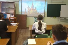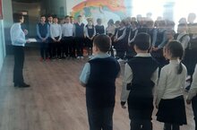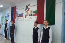 Каждый понедельник в школе начинается с исполнения гимна РФ и РТ и поднятия флагов.