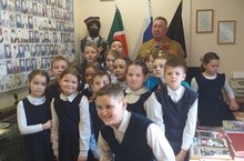 В рамках месячника патриотического воспитания учащиеся начальной школы встретилсь с воином-интернационалистом, служивщим в Афганистане. Он рассказал о одах службы, познакомил детей с одеждой и оружием того времени.