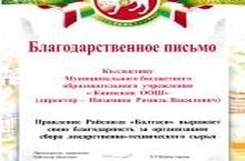 Кенә мәктәбе коллективы дару үләннәре җыюны оештырган өчен Рәхмәт хаты белән бүләкләнде.