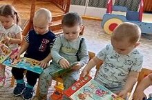 Нәни төркем балалары китапларны бик кызыксынып карыйлар.
