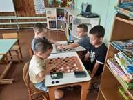 Мәктәпкә әэерлек төркем балалары теләп Шашка уены уйныйлар.
